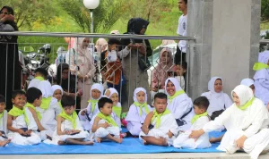 Saat pembagian medali di lapangan Wirabraja Bukittinggi, rasa bangga nampak terpancar dari wajah Ketua Pengkot TI Bukittinggi Hj Noni.