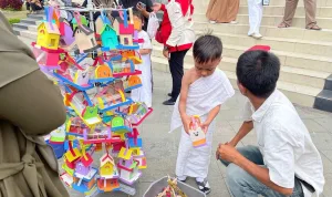 Pembagian mendali kepada atlet bertempat di lapangan Wirabraja Bukittinggi pada Minggu (6/11/2022) sore itu, sudah yang ke sekian kalinya dikalungkan Hj Noni ke para atlet.