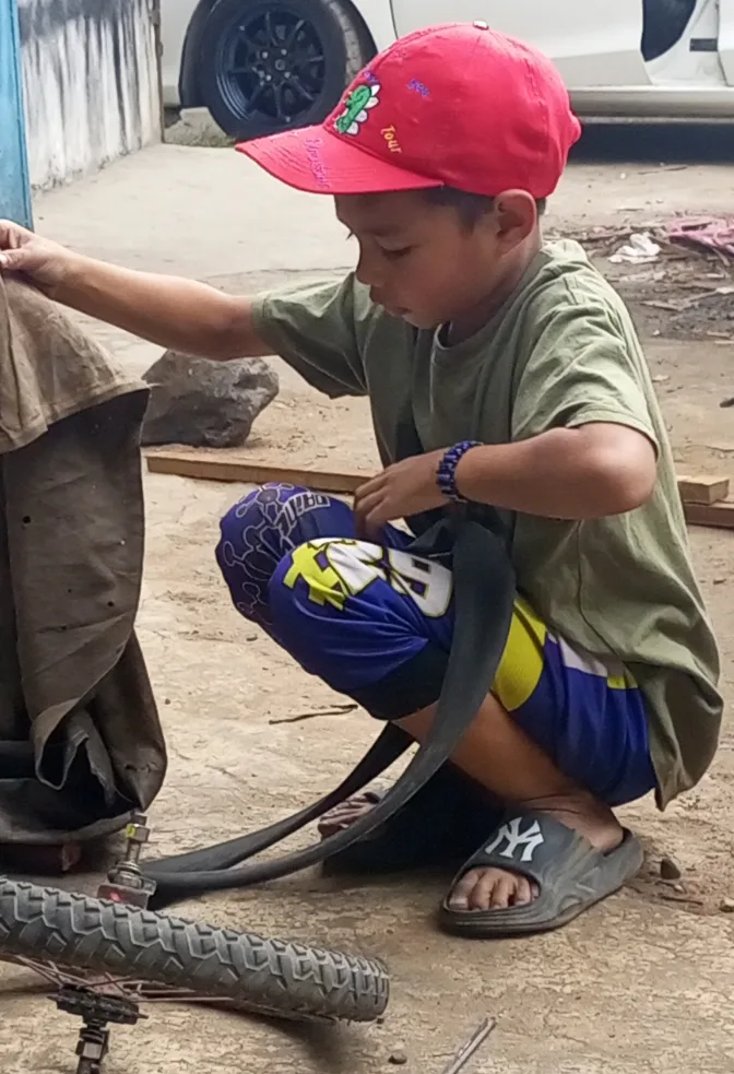 ”Memudahkan tukang tambal ban untuk menambalnya,” tambah Azka yang berhasil meloloskan ban dalam sepedanya menambahkan.