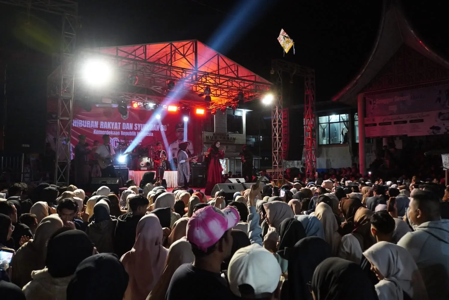 PADANG PANJANG – Suasana semarak mewarnai perayaan Hari Ulang Tahun ke-80 Kemerdekaan Republik Indonesia (HUT RI) di Kota Padang Panjang. Ratusan masyarakat tumpah ruah memadati Terminal Mikrolet depan Gumarang untuk mengikuti Hiburan Rakyat dan Syukuran 80 Tahun Kemerdekaan RI, Ahad (17/8/2025) malam.