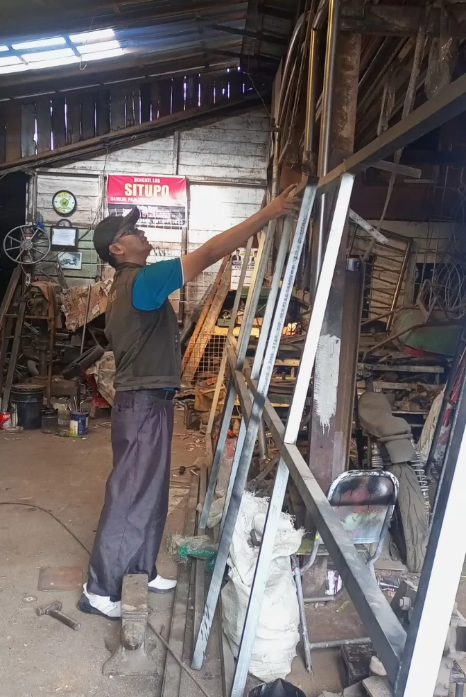 Puluhan rangka baja untuk berbagai keperluan, menunggu sentuhan tangan ayah empat orang anak ini. ***