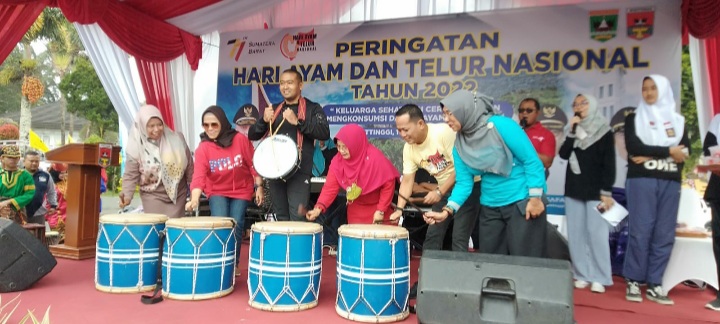 BUKITTINGGI- Wakil Gubernur Sumatera Barat (Sumbar) Audy Joinaldy, Dt Rajo Pasisia Alam membuka secara resmi kegiatan Gerakan Masyarakat Hidup Sehat (germas) di tataran tingkat provinsi Sumbar di pelataran Jam Gadang Kota Bukittinggi, Sabtu (15/10/2022).Pada kegiatan yang berkaitan dengan memperingati Hari Ayam dan Telor Nasional (HATN)-2022 itu, Wagub Audy didampingi Kadis Pendidikan Sumbar, Kepala Dinas Kesehatan Kota (DKK) Bukittinggi, Kadis Pertanian dan Pangan Kota Bukittinggi.