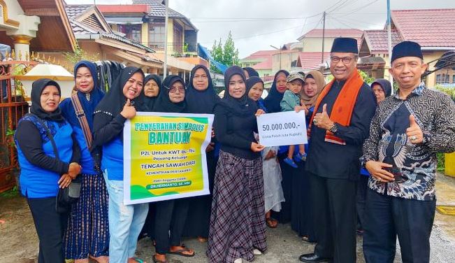 BUKITTINGGI - Wakil Wali Kota Bukittinggi, Sumatera Barat, Marfendi Dt. Basa Balimo serahkan bantuan berupa uang sebanyak Rp50.000.000 kepada Kelompok Wanita Tani (KWT) atau "Ibu-ibu Pejuang" Tangah Sawah, kota setempat, Jum'at (14/10/2022).Pemberian bantuan tersebut turut dihadiri aparatur Dinas Pertanian Kota Bukittinggi.