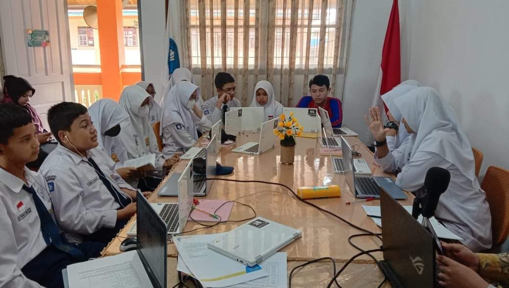 PADANG PANJANG - Sekolah Menegah Pertama Negeri (SMPN) 5 Kota Padang Panjang, Sumatera Barat berkolaborasi dan berinteraksi dengan Naval Base Secondary School Singapura dalam ajang 2022 Online Exchange Programe, Indonesia-Singapore untuk pertama kalinya.Kepala SMPN 5, Milda Guza, S.Kom yang ikut hadir menyaksikan interaksi siswanya itu, mendukung sekali hadirnya kegiatan ini.