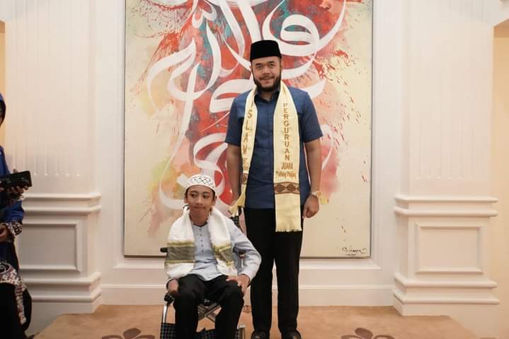 Usai dijamu makan, Fadly juga berkesempatan mengobrol dengan Naja dan orang tua serta melihatkan koleksi lukisan di rumah dinas, salah satunya lukisan kaligrafi karya Ustaz Deri Sulaiman.Naja merupakan anak berusia 10 tahun yang mengidap cerebral palsy (lumpuh otak dari lahir). Namun dengan kekurangan yang dideritanya, tidak menghambat dirinya untuk bisa menghafal Al Qur’an.Ia sempat menghebohkan masyarakat Indonesia saat mengikuti salah satu program televisi Hafiz Indonesia 2019. Bagaimana tidak, anak dengan kelumpuhan otak bisa menghafal Al Qur’an dengan hafalan 30 Juz lengkap dengan ayat, surat serta halaman dan terjemahannya.Sontak hal tersebut membuat banyak orang mengaguminya. Sampai salah seorang juri dalam program tersebut, alm. Syekh Ali Jaber mencium kaki anak tersebut karena kekagumannya.