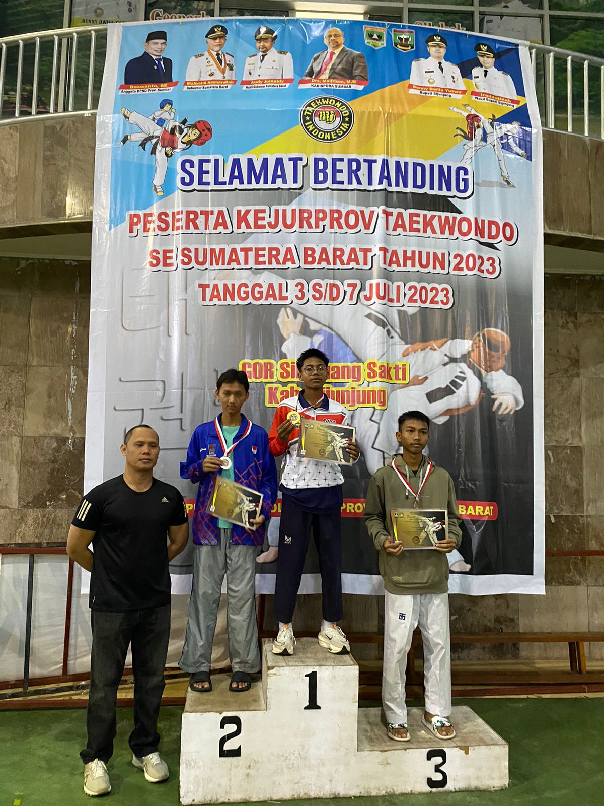 BUKITTINGGI - Siswa SMA Negeri 5 Bukittinggi berhasil meraih prestasi gemilang, dengan perolehan medali emas di Kejuaraan Provinsi (Kejurprov) Taekwondo Sumatera Barat (Sumbar), Selasa (04/7/2023).Pelajar Kelas XII, Bayu Rismansyah mampu menyabet medali emas dan nantinya bakal mewakili Pemprov Sumbar dalam ajang POPNAS di Palembang, pada kategori Poomsae Yunior.