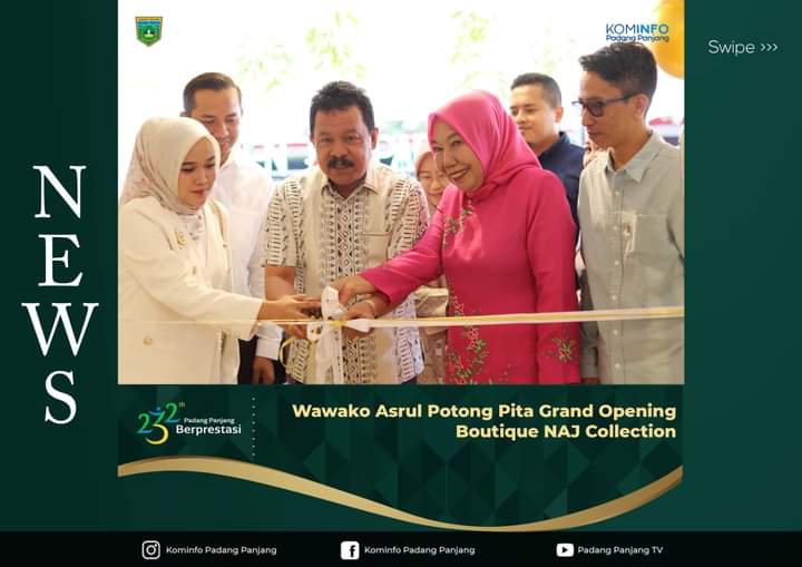 PADANG PANJANG – Ditandai dengan pemotongan pita pertama, Wakil Wali Kota, Drs. Asrul resmikan Grand Opening Boutique NAJ Collection yang berlokasi di Komplek Hotel Bungalau Indah, Jalan Ahmad Yani, Kelurahan Ngalau, Kecamatan Padang Panjang Timur (PPT), Sabtu (24/9/2023).Wawako Asrul menyebutkan, Pemerintah Kota sangat mengapresiasi kegiatan yang mendukung pertumbuhan ekonomi di Padang Panjang. Salah satunya dengan adanya lapangan pekerjaan baru seperti ini.