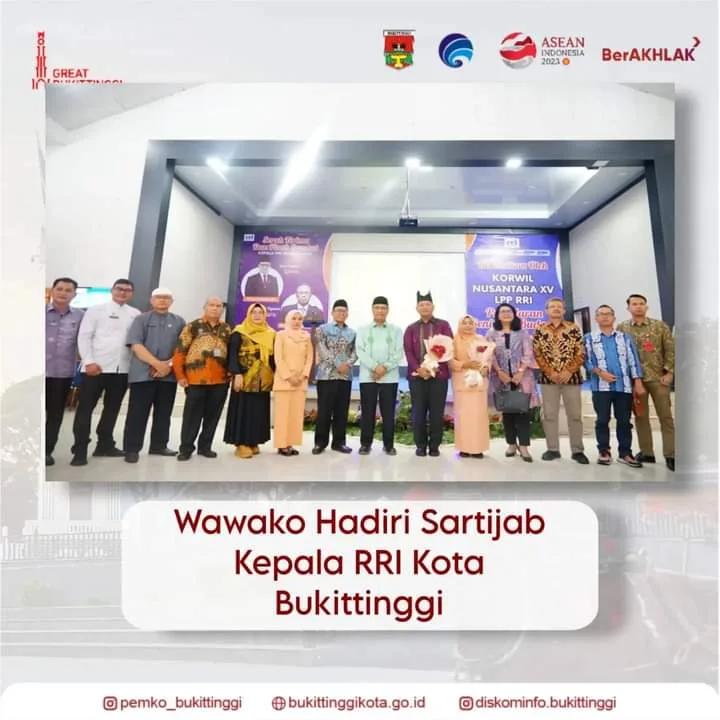 BUKITTINGGI -- Wakil Wali Kota Bukittinggi, Marfendi hadiri serah terima jabatan (Sertijab) dan pisah sambut Kepala RRI Bukittinggi. Kegiatan ini berlangsung di Auditorium RRI Bukittinggi, Jumat (27/10/2023).Wakil Wali Kota Bukittinggi, Marfendi, menyampaikan, apresiasi dan mengucapkan selamat datang kepada pejabat baru serta juga mengucapkan selamat berkiprah di tempat yang baru kepada pejabat lama.