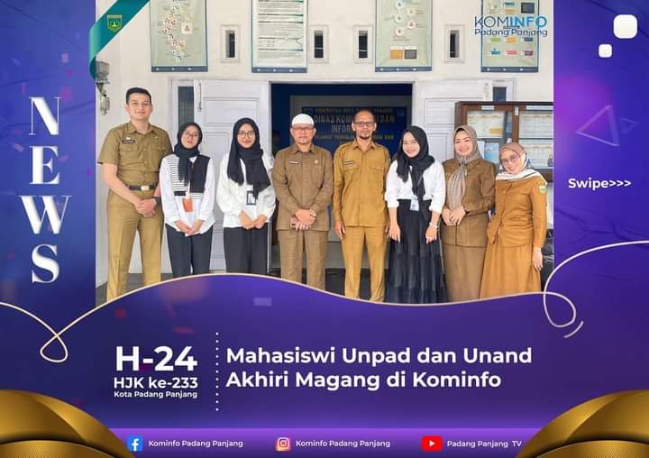 PADANG PANJANG -- Tiga mahasiswi Program Studi Hubungan Masyarakat dan Ilmu Komunikasi, akhiri masa magang di Dinas Kominfo Kota Padang Panjang, Senin (6/11/2023). Mereka, Syifa Nabilla dari Universitas Padjadjaran (Unpad) Bandung, Julia Efrita dan Aisyah Nabila Al-Zuhriy dari Universitas Andalas (Unand) Padang.Selama masa magang, ketiganya mendapatkan pengalaman berharga dalam bidang komunikasi dan informatika serta berkontribusi dalam berbagai program yang dikerjakan Kominfo.