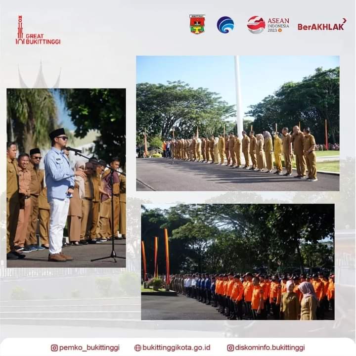 Apel gabungan diikuti oleh Sekda, Staf Ahli, Asisten, Kepala OPD, Kepala Sekolah dan seluruh ASN di Lingkungan Pemerintah Kota Bukittinggi.Dalam amanatnya, Wali Kota Bukittinggi, Erman Safar, mengucapkan terima kasih kepada seluruh Kepala OPD dan jajaran, yang telah bekerja keras selama ini, dalam rangka mencapai visi dan misi Kota Bukittinggi, yang sudah terealisasi hampir 100 persen.