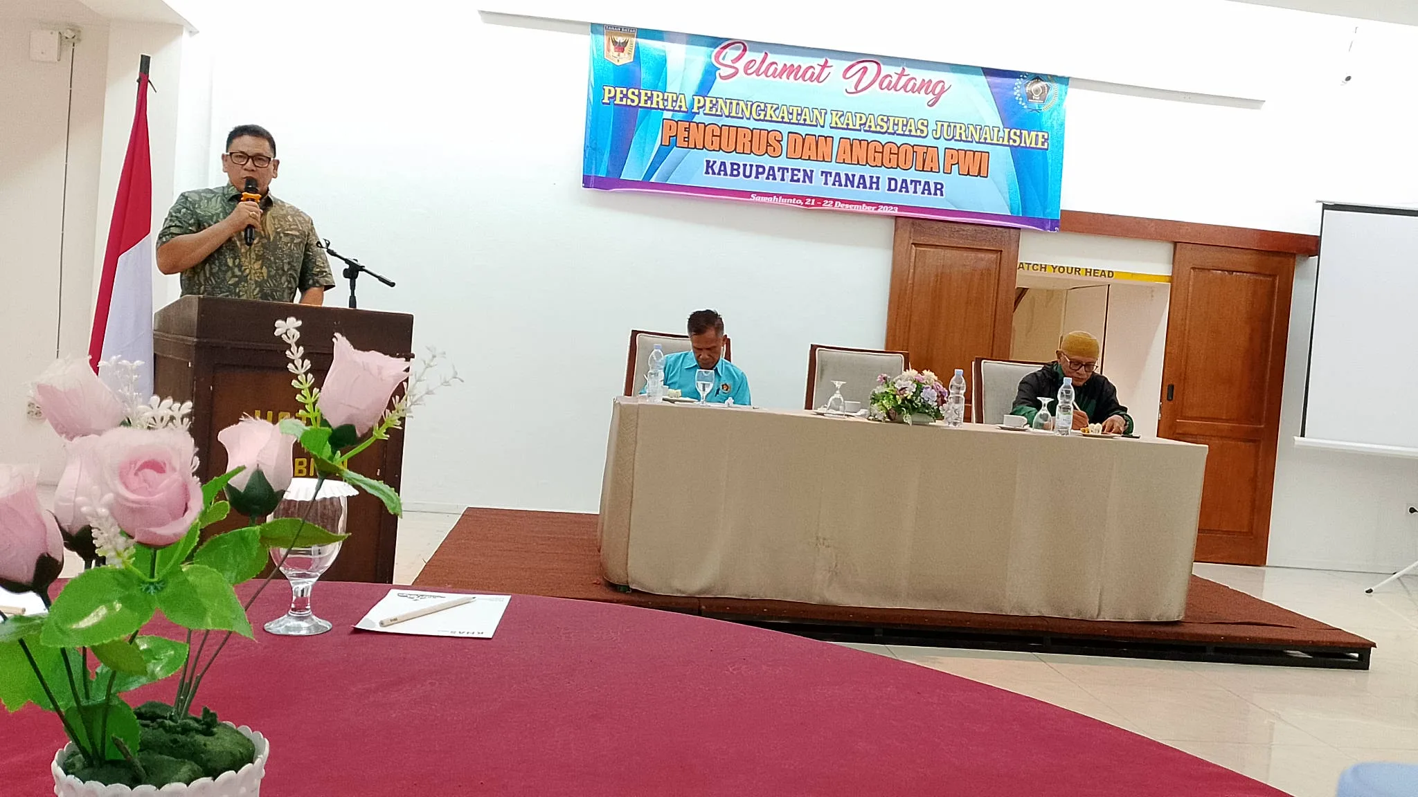 SAWAHLUNTO - Pemkab Tanah Datar mengharapkan anggota PWI Tanah Datar mampu menjadi jurnalis profesional seperti Adinegoro."Semoga memberi pencerahan. Program ini sangat strategis, karena dapat meningkatkan ilmu, membangkitkan semangat perjuangan, dan menghadirkan jurnalis profesional. Menjadi anggota PWI harus dibekali kemampuan seimbang, terus berupaya meningkatkan pengetahuan, dan keterampilan," kata Asisten I Setdakab Tanah Datar, Elizar saat membuka Kegiatan Peningkatan Kapasitas Anggota PWI Tanah Datar di Hotel Khas Ombilin Sawahlunto, Kamis (21/12/2023) malam.