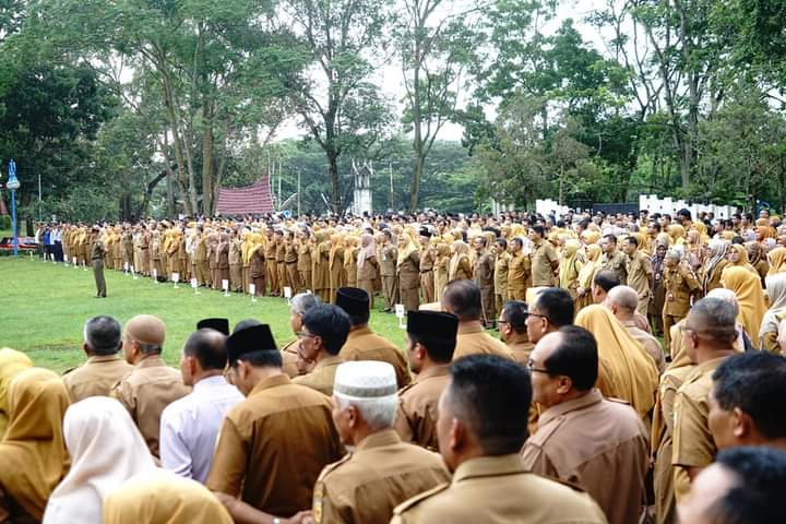 TANAH DATAR, Bacalahnews - Bupati Tanah Datar Eka Putra memimpin apel gabungan seluruh Aparatur Sipil Negara (ASN) di lingkup Pemerintah Kabupaten Tanah Datar, di halaman Kantor Bupati di Pagaruyung, Senin (02/1/2024).Bupati mengatakan apel gabungan ASN diawal tahun ini merupakan langkah strategis dalam upaya konsolidasi bersama. "Apel pagi ini perlu dilakukan guna menyamakan persepsi dalam menyusun kekuatan melaksanakan setiap program dan kegiatan ke depannya," kata Eka.