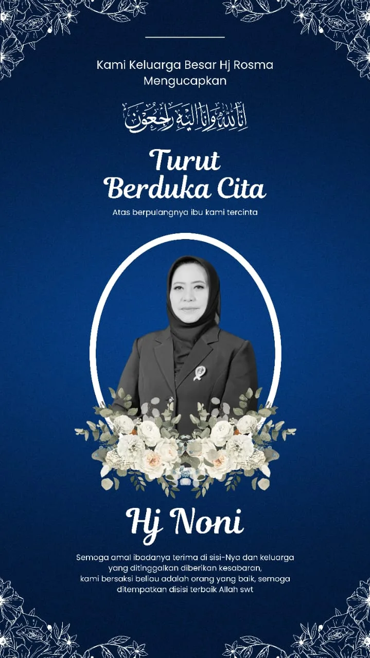 Kabar meninggal Hj Noni S Sos disampaikan anak Hj Noni S Sos, Angga Kurniawan."Innalillahi wa inna ilaihi rojiun. Telah meninggal dunia Kader PAN, Wakil Ketua DPC PAN Bukittinggi atau Anggota DPRD Kota Bukittinggi pada 14 Januari 2024," tulis Angga.