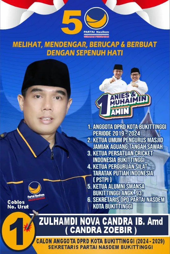 Sebagai orang nomor dua di jajaran kepengurusan Partai Nasdem di Kota Wisata tersebut, Zulhamdi Nova Candra yang memiliki motto hidup, "Melihat, Mendengar, Berucap & Berbuat dengan Sepenuh Hati" yakin apa yang diminta oleh DPP Partai Nasdem bisa dilakukan di Kota Bukittinggi."Kalau Pak Ketum mengatakan harus bisa masuk tiga besar, maka saya pastikan tak ada alasan bagi para pengurus dan warga Partai Nasdem untuk tidak mensukseskannya," ucapnya serius.