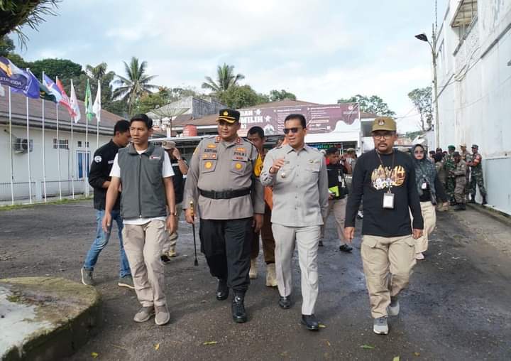 PADANG PANJANG — Memasuki masa tenang jelang pemilihan umum (Pemilu), Penjabat (Pj) Wali Kota, Sonny Budaya Putra, A.P, M.Si melepas petugas pembersihan Alat Peraga Kampanye (APK), Ahad (11/1/2024) di halaman Kantor Komisi Pemilihan Umum (KPU) Padang Panjang.Didampingi Kapolres, AKBP Kartyana Widyarso Wardoyo Putro, SIK, MAP dan pejabat terkait lainnya, Sonny melepas