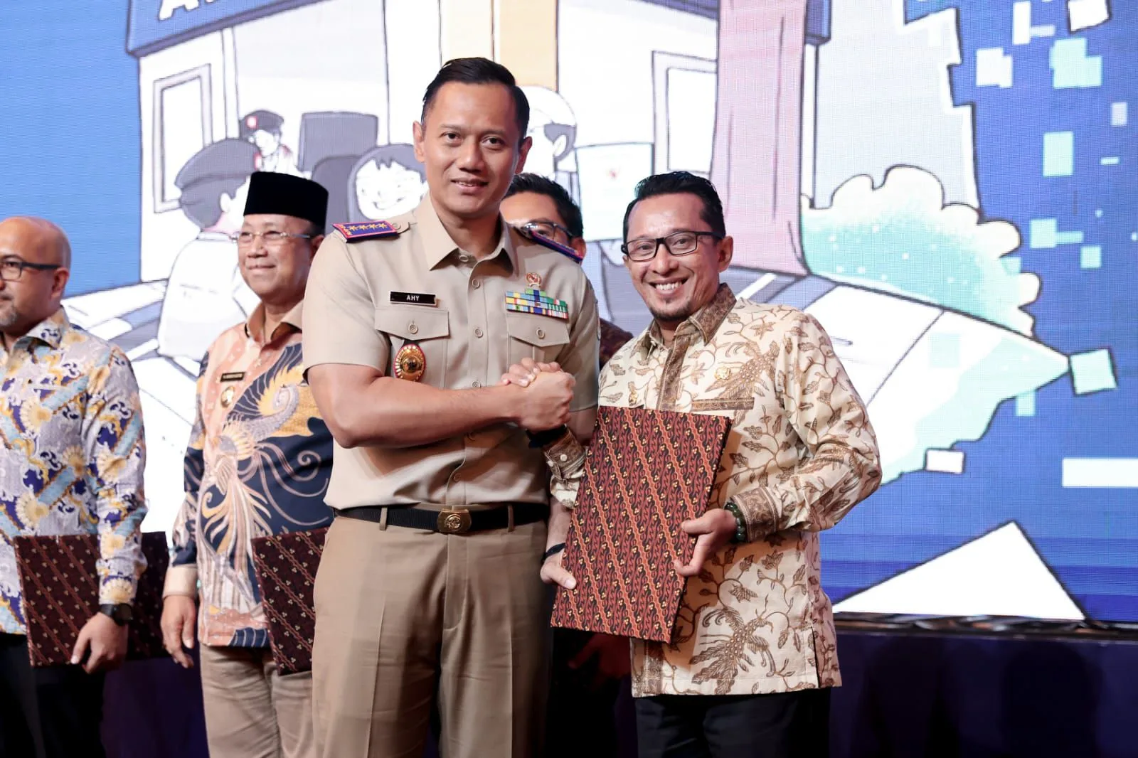 “Pada Rakernas tahun 2024 saat ini juga diserahkan penghargaan kepada Bupati Tanah Datar, Bupati Blora dan Bupati Karimun, Walikota Surakarta, Walikota Denpasar dan Sekretaris Daerah Provinsi Kepulauan Riau. Mudah-mudahan kabupaten/kota dan provinsi lainnya ke depannya juga bisa mencontoh dalam pembebasan BPHTB dan PTSL,” kata AHY.Selain itu juga diserahkan kepada lembaga eksternal yaitu Kapolri, Jaksa Agung, Panglima TNI, Menteri Kelautan dan Perikanan, Mendagri dan Kepala Badan Siber dan Sandi Negara. (Adv)