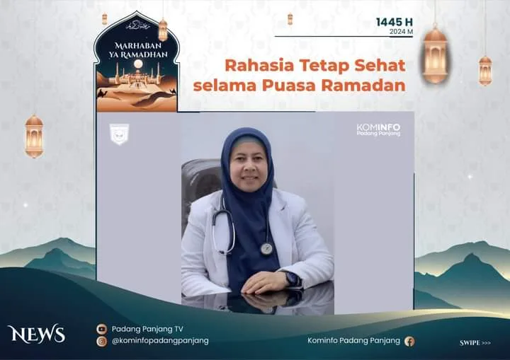 Bulan yang istimewa ini kita dituntut untuk menjaga ibadah dan kesehatan. Menjaga kesehatan fisik di bulan Ramadan bukanlah hal yang mudah karena adanya perubahan pola makan dan aktivitas.Dokter spesialis penyakit dalam RSUD Kota Padang Panjang, dr. Sri Angraeni, Sp.PD, FINASIM saat ditanyai oleh tim Kominfo, Selasa (12/3), dimana kata dr. Sri ada beberapa tips bagi umat muslim untuk menjaga kesehatan selama Ramadan berlangsung.