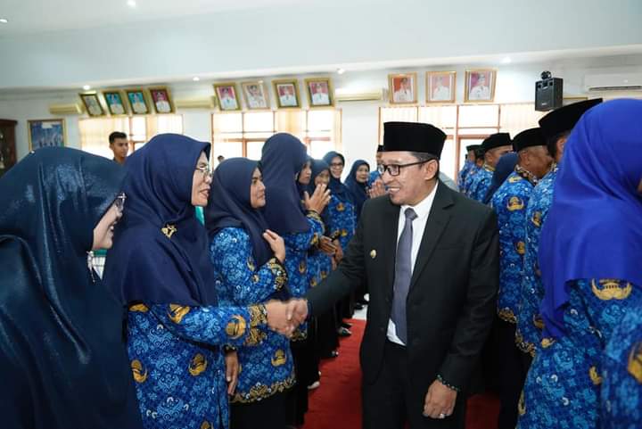 TANAHDATAR, Bacalahnews - Sebanyak 54 Pegawai Negeri Sipil (PNS) dilantik sebagai Pejabat Manajerial dan UPTD Taman Kanak-Kanak di Lingkungan Pemerintah Kabupaten Tanah Datar di Aula Kantor Bupati di Pagaruyung, Selasa (19/3/2024). Pejabat yang dilantik tersebut terdiri dari dua pejabat tinggi pratama, sembilan pejabat administrasi, 31 pejabat pengawas, empat pejabat administrator dan pengawas pada Dinas Dukcapil dan delapan Kepala UPTD Taman Kanak-Kanak.