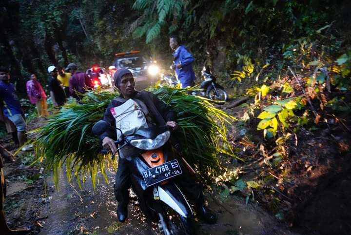 Bupati menyampaikan apresiasi atas semangat masyarakat yang segera bergotong royong membersihkan material longsor yang memenuhi badan jalan. “Terima kasih kepada masyarakat dan Satgas BPBD yang bergerak cepat membersihkan material longsor, semoga dinilai ibadah oleh Allah SWT,” tutur Eka.Melihat kondisi cuaca ekstrem beberapa hari terakhir, Bupati juga mengingatkan Camat bersama Wali Nagari, Wali Jorong dan masyarakat agar terus meningkatkan kewaspadaan. “Hujan lebat beberapa hari ini memicu berbagai musibah, seperti banjir bandang dan tanah longsor, karena itu mengimbau masyarakat yang berada di sekitar lokasi rawan untuk meningkatkan kewaspadaan,” harap Eka. (fantau)