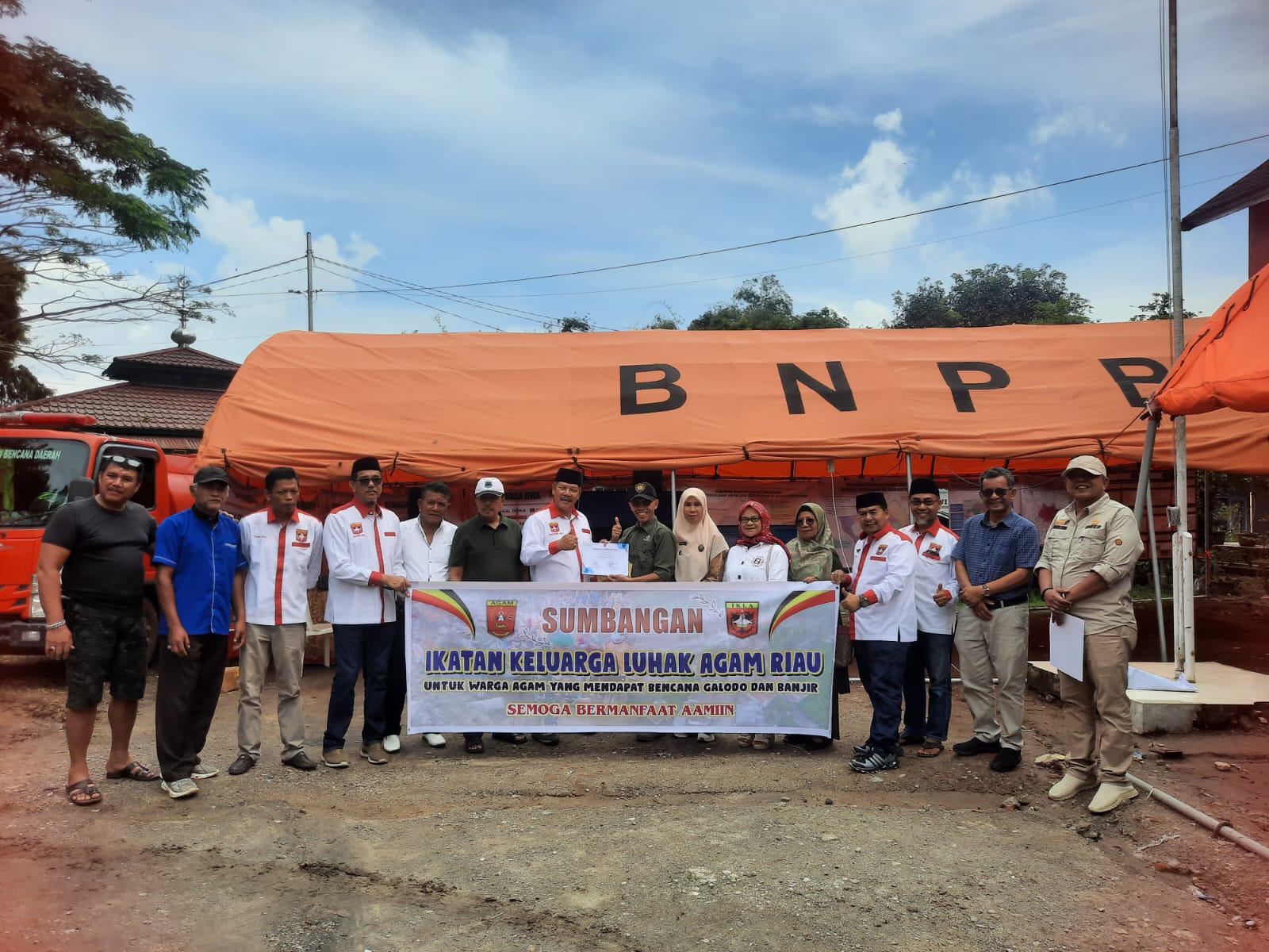 Penyerahan bantuan dilakukan di Posko Bencana Kabupaten Agam, bertempat di Kantor Camat Sungai Pua, Minggu (2/6).Donasi yang diserahkan merupakan hasil pengumpulan dari berbagai kecamatan di Riau dan mencakup total bantuan sebesar Rp153.660.000.