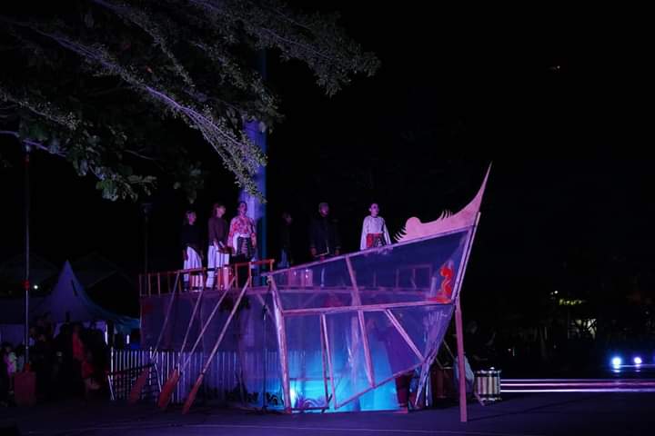 TANAHDATAR, Bacalahnews - Komunitas Indonesia Performance Syndicate menggelar pertunjukan karya bertajuk Legaran Svarnadvipa, sebagai puncak kegiatan penciptaan karya kreatif inovatif dalam program Dana Indonesia, Dirjen Kebudayaan Kemendikbud Ristek RI, di Lapangan Cindua Mato Batusangkar, Sabtu (29/6/2024). Bupati Tanah Datar Eka Putra saat membuka acara berharap kegiatan ini mampu menyampaikan semangat kebangkitan di masa pemulihan akibat bencana alam banjir bandang dan longsor di Tanah Datar.