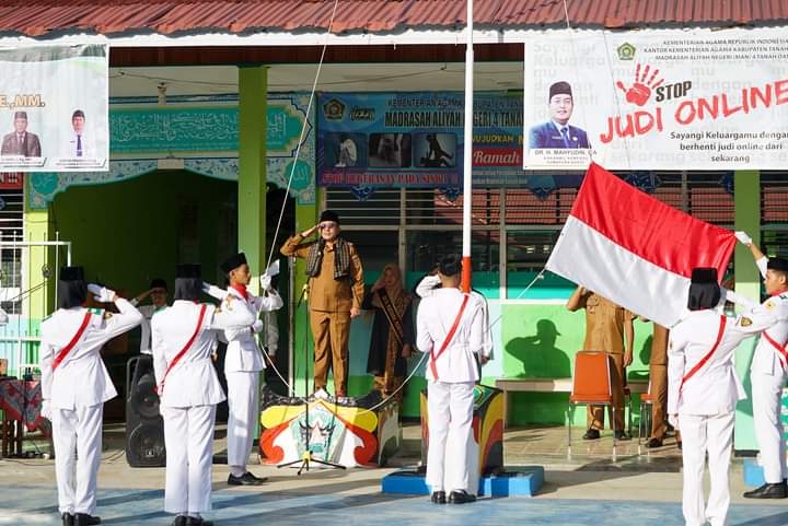 TANAH DATAR, Bacalahnews - Bupati Tanah Datar Eka Putra menjadi Inspektur Upacara (Irup) di MAN 4 Tanah Datar, Sumpur Kecamatan Batipuh Selatan."Bupati menjadi Irup di Madrasah Aliyah Negeri (MAN) merupakan bentuk nyata perhatian dan sinergitas dengan jajaran Kantor Kemenag," kata Bupati Eka Putra dalam sambutannya saat jadi Inspektur Upacara, Senin (22/7/2024).