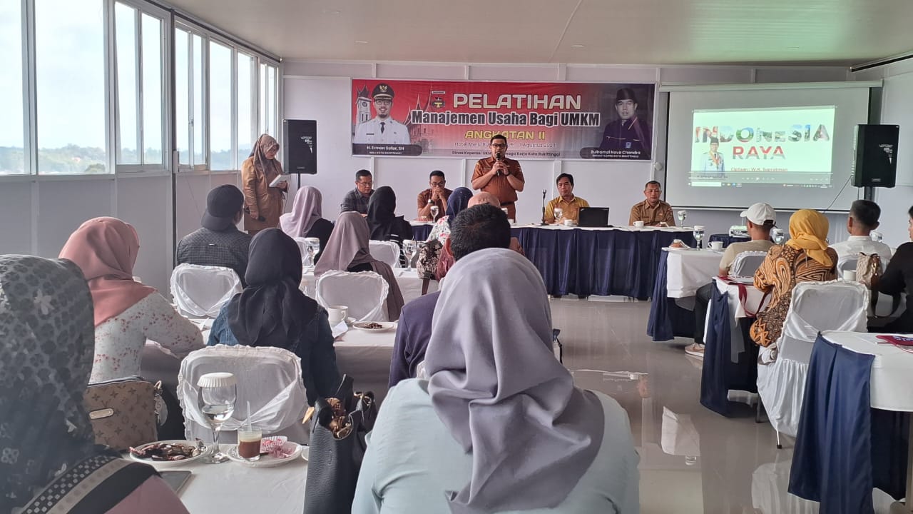 Pelatihan yang berlangsung dari tanggal 5-7 Agustus 2024 ini diadakan di salah satu hotel berbintang di Kota Bukittinggi. Acara dibuka oleh Kadis Koperasi, UKM dan Tenaga Kerja Kota Bukittinggi, Mihandrik, S.STP, M.Si, yang didampingi oleh Kabid Koperasi dan UKM Sesri, S.Kom, serta JFT Pelaksana Sri Widya, SH.i.