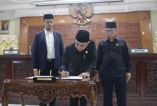 BUKITTINGGI - DPRD bersama Pemerintah Kota Bukittinggi sepakati perubahan APBD 2024. Nota persetujuan APBD Perubahan 2024 itu, ditandatangani kedua belah pihak, dalam rapat paripurna di Gedung DPRD, Senin (05/08/2024).