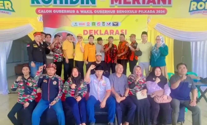 Kota Bengkulu – Kemenangan pasangan petahana calon gubernur Bengkulu, nomor urut dua (2), Rohidin Mersyah – Meriani (Romer) sudah didepan mata dan semakin sulit dibendung, selain didukung partai pengusung yakni Golkar, Hanura, PKS, PBB, Perindo dan PSI, dukungan juga datang dari tokoh masyarakat minang, Pokdarkamtibmas Bhayangkara Bengkulu, KBPP Polri Provinsi Bengkulu, Ikatan Keluarga Alumni Pelajar dan Mahasiswa Provinsi Bengkulu-Yogyakarta (IKA PMPB-Y), Ikatan Pemuda Penggerak Desa Indonesia (IPDA) Bengkulu dan Gerakan Relawan Pengusaha Muda (Graha).Kali ini dukungan terhadap pasangan tersebut kembali datang dari tiga puluh delapan (38) organisasi masyarakat yang serentak memberikan dukungan yakni Kosgoro 1957, MKGR, SOKSI, Majelis Dakwa Islamiyah (MDI), SATKAR ULAMA, Angkatan Muda Satkar Ulama (AMSI), Angkatan Muda Pembaharuan Indonesia (AMPI), AMPG, KPPG. AMII, PPAPRI, Ormas Maju Bersama Bengkulu (OMBB), Himpunan Wanita Karya (HWK), GSPI / 212, Laskar Merah Putih Indonesia, Alhidayah, DPD KNPI Provinsi Bengkulu.