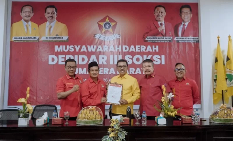 “Merujuk rekam jejak perolehan suara Partai di Pemilu 2024 serta hasil pemilihan serentak 2024, Depidar III Soksi Sumatera Barat menilai, Bang Khairunas layak memimpin Partai Golkar untuk periode kedua,” ungkap Aguswanto sembari menyerahkan dukungan tertulis, Minggu (27/4/2025).Dukungan tertulis itu disampaikan Aguswanto, pada arena Musyawarah Daerah (Musda) Dewan Pimpinan Daerah (Depidar) III Sentral Organisasi Karyawan Swadiri Indonesia (Soksi) Sumatera Barat di aula kantor Partai Golkar di Jl Pramuka Raya, Padang, Sabtu.