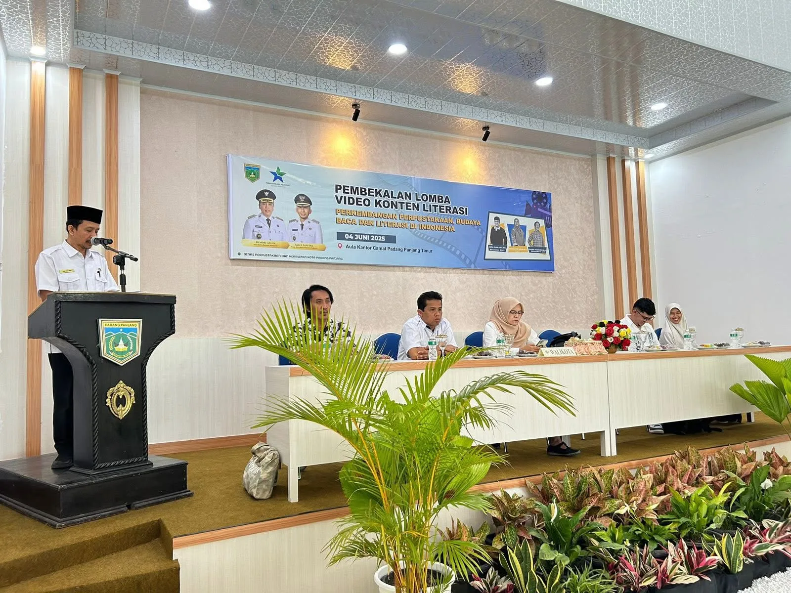 PADANG PANJANG - Sebanyak 50 peserta terbaik dalam Lomba Video Konten Litererasi yang digelar Dinas Perpustakaan dan Kearsipan (DPK) ikuti pembekalan di Aula Kantor Camat Padang Panjang Timur (PPT), Rabu (4/6/2025).Kegiatan dibuka Staf Ahli Pemerintah, Hukum dan Politik Nofiyanti, didampingi Kepala DPK, Yan Kas Bari dan jajaran, serta Plt. Camat PPT Doni Rahman dan tiga dewan juri yang narasumber.