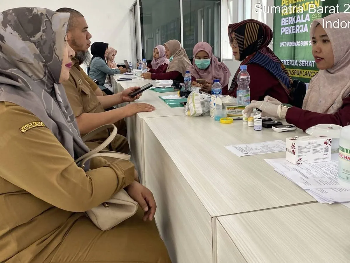 PADANG PANJANG -- ASN dan non-ASN Sekretariat Daerah Kota (Setdako) ikuti Pemeriksaan Kesehatan Berkala Pekerja di Hall Lantai III Balai Kota, Rabu (4/6/2025).Difasilitasi Puskesmas Bukit Surungan (Busur), pemeriksaan kesehatan tersebut berlangsung selama dua hari sejak Selasa (3/6/2025) kemarin.