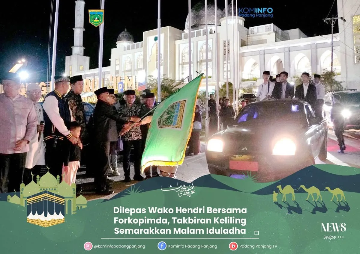 PADANG PANJANG – Malam Takbiran Iduladha 1446 H di Kota Padang Panjang berlangsung meriah dan penuh khidmat. Wali Kota, Hendri Arnis bersama jajaran Forum Komunikasi Pimpinan Daerah (Forkopimda), secara resmi melepas rombongan Takbiran Keliling di pelataran Islamic Centre, Kamis (5/6/2025) malam.Wargapun turut hadir di area Islamic Centre, menyambut iring-iringan kendaraan, serta lantunan Takbir, Tahmid, dan Tahlil yang menggema dari seluruh penjuru kota. Takbiran keliling menjadi wujud ekspresi keimanan dan syiar Islam, sekaligus mempererat ukhuwah masyarakat Serambi Mekah.