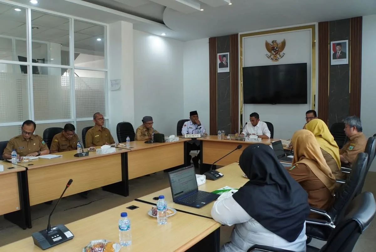 PADANG PANJANG - Pemerintah Kota gelar Rapat Percepatan Pelaksanaan Program Makan Bergizi Gratis (MBG), Senin (16/6/2025) di Aula VIP Balai Kota.Rapat dipimpin Wakil Wali Kota, Allex Saputra dan dihadiri Sekretaris Daerah Kota, Sonny Budaya Putra, Staf Ahli, Putra Dewangga, Asisten II Setdako, Ewasoska, kepala OPD terkait dan jajaran serta Kepala Kantor Kemenag Padang Panjang, Mukhlis M.