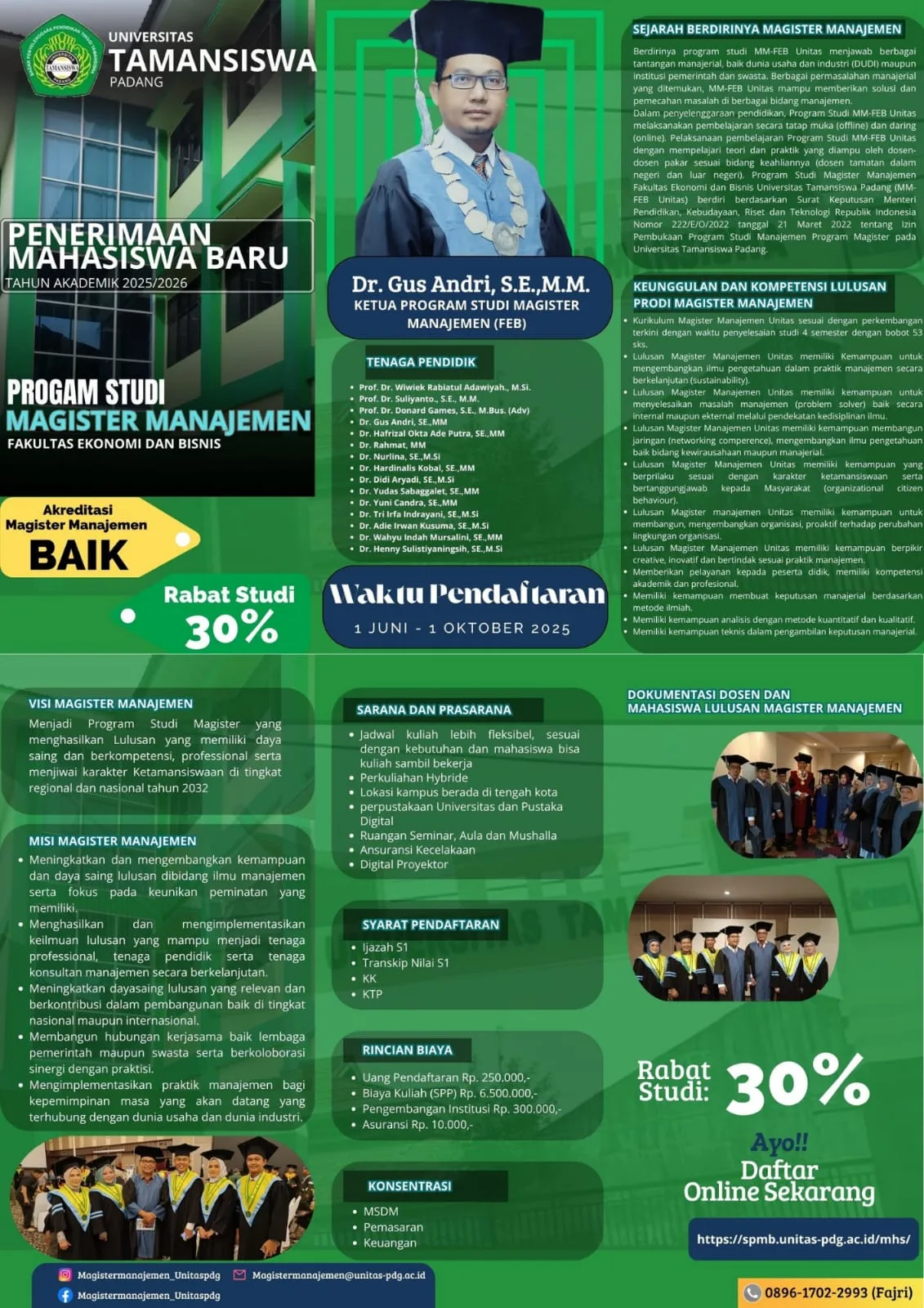 Jangan lewatkan kesempatan untuk bergabung dengan Program Studi Magister Manajemen Universitas Tamansiswa Padang dan membangun masa depan Anda dengan keunggulan kompetensi!FM