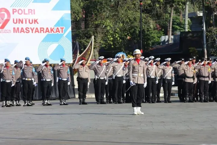 TANAH DATAR, Bacalahnews - Kepolisian Resort (Polres) Tanah Datar menggelar Upacara Hari Ulang Tahun Bhayangkara ke-79 di Lapangan Cindua Mato Batusangkar, Selasa (1/7/2025).Upacara dipimpin Kapolres Tanah Datar AKBP Nur Ichsan Dwi Septiyanto, dan dihadiri Bupati Eka Putra, Forkopimda, Ketua TP PKK, Ketua Bhayangkari Polres Tanah Datar, Pimpinan OPD dan undangan lainnya.