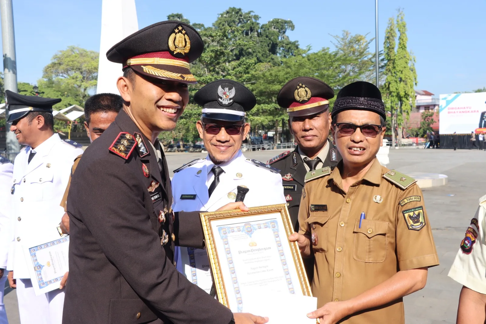 TANAH DATAR, Bacalahnews – Polres Tanah Datar memberikan Piagam Penghargaan Hari Ulang Tahun Bhayangkara ke-79 kepada anggota Polri berprestasi, masyarakat dan pejabat pemerintahan yang berkontribusi dalam pelaksanaan tugas Polri.Pemberian piagam penghargaan ini diserahkan oleh Bupati Tanah Datar Eka Putra, Kapolres, dan Forkopimda Tanah Datar setelah pelaksanaan Upacara peringatan Hari Bhayangkara di Lapangan Cindua Mato Batusangkar, Selasa (1/7/2025).