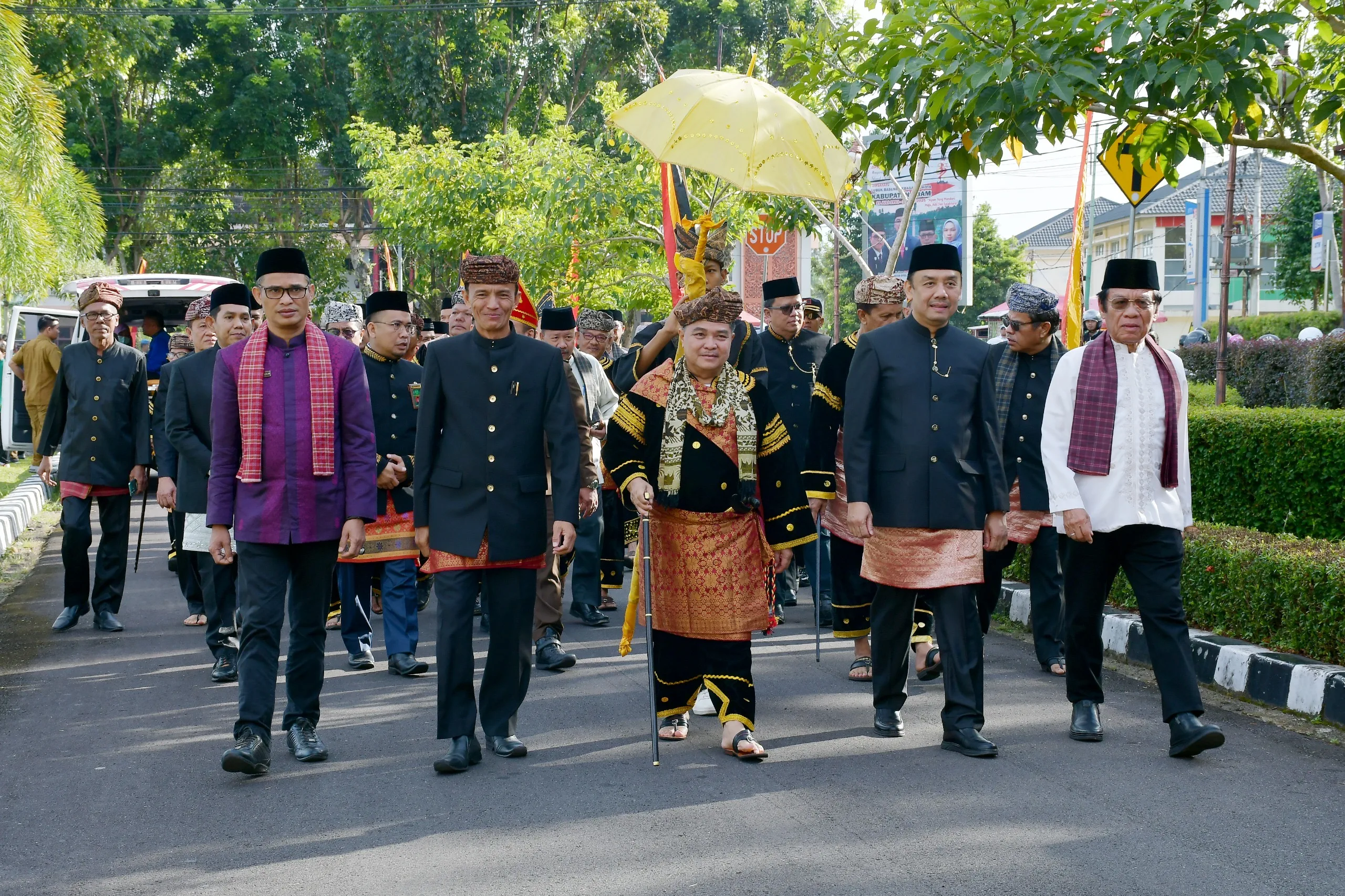 Bupati Benni Warlis sendiri ikut berjalan kaki dalam arak-arakan, didampingi Wakil Bupati, Forkopimda, dan tokoh-tokoh adat. Ia tampak khidmat sekaligus bersemangat menyambut antusiasme warga.“Perayaan ini menjadi refleksi perjuangan panjang dan kerja keras para pendahulu kita. Kita jaga warisan ini, kita lanjutkan dengan pembangunan yang berlandaskan adat,” kata Bupati dalam pidatonya sebelumnya.Puncak acara ditutup dengan jamuan makan bajamba di Balairung Rumah Dinas Bupati. Suasana kekeluargaan begitu terasa saat seluruh elemen masyarakat. Tanpa sekat jabatan maupun status sosial, duduk bersila menikmati hidangan bersama.“Pawai bajamba ini adalah bentuk ekspresi kebersamaan dan pengingat bahwa nilai adat kita adalah kekuatan utama dalam menghadapi masa depan,” tambah Handria Asmi. (ANZ)