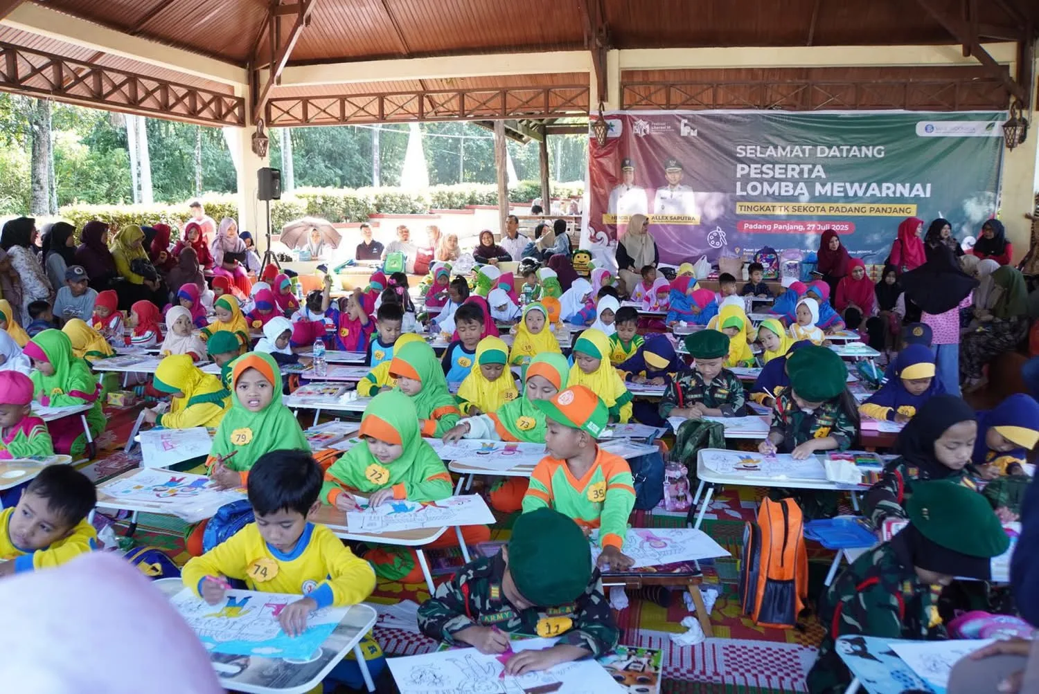 PADANG PANJANG — Keceriaan terpancar saat 100 anak di berbagai Taman Kanak-Kanak (TK) se-Kota Padang Panjang mengikuti Lomba Mewarnai dalam rangkaian kegiatan Festival Literasi, Ahad(27/7/2025) di Pusat Dokumentasi dan Informasi Kebudayaan Minangkabau (PDIKM).Mengusung tema “Sekolahku”, lomba ini menjadi salah satu daya tarik yang menggugah semangat literasi sejak usia dini.