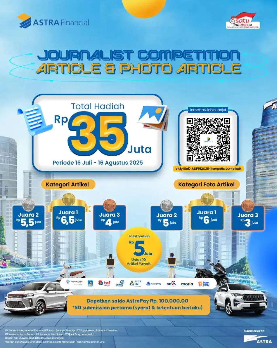Kompetisi ini merupakan wujud dukungan Astra Financial dalam mendorong peningkatan literasi dan inklusi keuangan di Indonesia melalui penyebaran informasi seputar layanan akses keuangan yang mendukung pertumbuhan industri otomotif nasional, khususnya melalui partisipasi Astra Financial di GIIAS 2025.”Kami ingin memberikan apresiasi kepada para jurnalis yang telah menjadi mitra strategis dalam menyebarluaskan informasi edukatif mengenai solusi keuangan Astra Financial. Kompetisi ini juga menjadi ruang kolaboratif untuk memperkuat literasi dan inklusi keuangan di Tanah Air, sejalan dengan semangat kami dalam mendukung kemajuan industri otomotif Indonesia,” ujar Tan Chian Hok, Project Director Astra Financial di Jakarta, Kamis (24/7/2025).