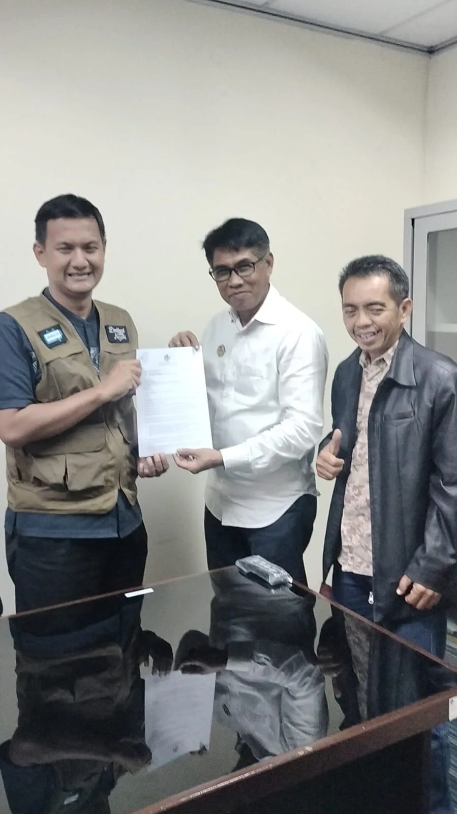 Ketua Umum DPP PJS, Mahmud Marhaba didampingi Ketua Divisi Humas DPP PJS, M. Yasir saat menyerahkan dokumen pendaftar calon konstituen Dewan Pers kepada Ketua Komisi Penelitian, Pendataan dan Ratifikasi Dewan Pers, Yogi Hadi Ismanto, Selasa (29/07/2025) di kantor Dewan Pers. (Foto: istimewa)