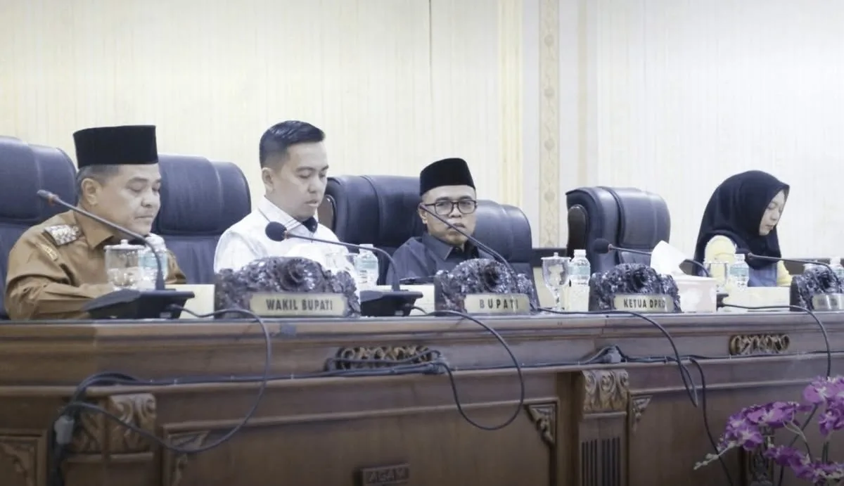 AGAM — DPRD Kabupaten Agam melaksanakan Rapat Paripurna Nota Pengantar Bupati Agam atas Rancangan KUA-PPAS tahun anggaran 2026, Senin (4/8/2025), di aula utama DPRD.Rapat paripurna dipimpin langsung Ketua DPRD Agam, H. Ilham, Lc, MA. Dihadiri Wakil Ketua DPRD Henrizal dan Aderia, SP. Turut dihadiri juga Bupati Agam H. Ir. Benni Warlis, unsur Forkopimda, anggota DPRD dan sejumlah kepala OPD di lingkungan Pemkab Agam.