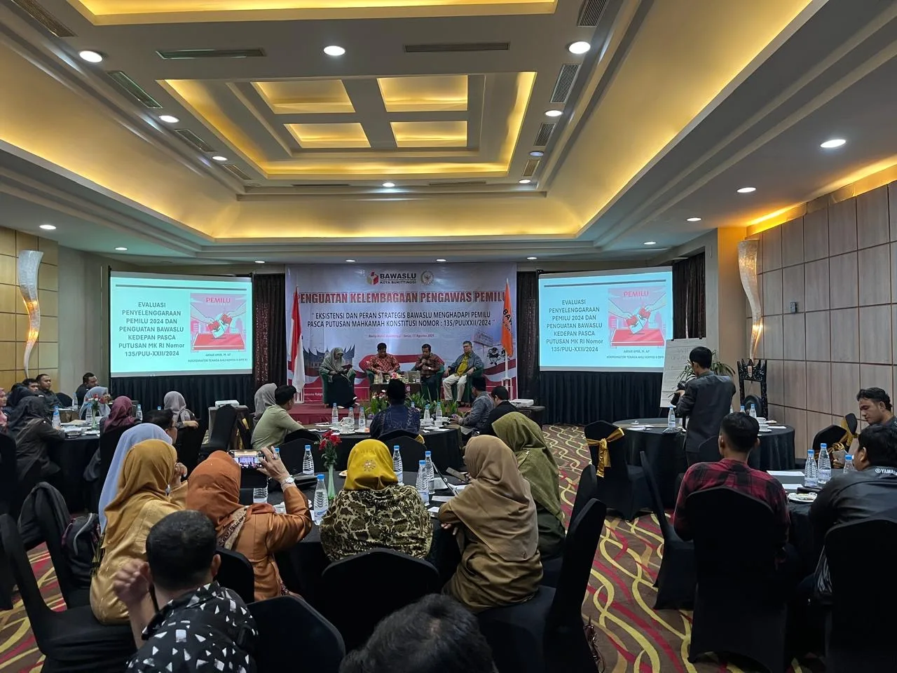 Atas lahirnya putusan MK itu, Bawaslu Kota Bukittinggi menggelar kegiatan sosialisasi guna Penguatan Kelembagaan Pengawas Pemilu, dengan tema “Eksistensi dan Peran Strategis Bawaslu Menghadapi Pemilu Pasca Putusan Mahkamah Konstitusi Nomor: 135/PUUXXII/2024”.Acara digelar di salah satu hotel di Bukittinggi itu, menghadirkan narasumber diantaranya Koordinator Tenaga Ahli Komisi 2 DPR RI Abrar Amir, Pemantau Pemilu (KIPP) Sumbar, Samaratul Fuad, dan Akademisi FH UNES Laurensius, Aliran S, Ramadhan Kemas, Khairul Fahmi, dan Nurhayati.Ketua Bawaslu Kota Bukittinggi, Ruzi Haryadi saat pembukaan acara, mengatakan, pemisahan antara pemilu nasional dan pemilu lokal dalam rentang waktu 2 sampai dengan 2,5 tahun sejak dilantiknya Presiden dan anggota DPR/DPD."Dengan diberlakukan putusan MK ini, di satu sisi beban Penyelenggara Pemilu akan terlihat berkurang karena ada jeda waktu mempersiapkan teknis dan pengawasan secara lebih matang. Tetapi di sisi lain bisa juga dipandang bertambah khususnya pada Pemilu Lokal, dimana persoalan Pilkada yang selama ini punya beban tersendiri disatukan dengan pemilu DPRD Provinsi dan Kabupaten/ Kota yang juga punya persoalan besar seperti money politik dan negatif campaign,” tuturnya. (hmr)