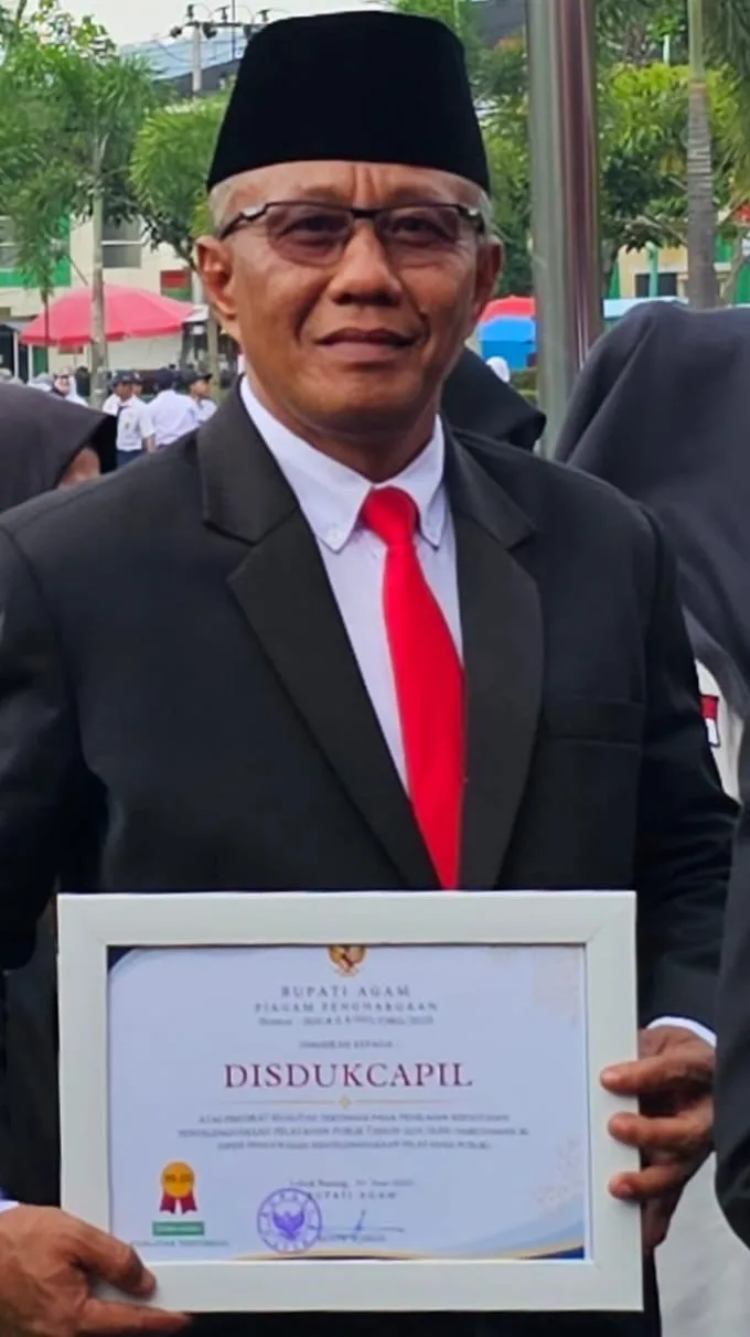 AGAM, Bacalah News – Dinas Kependudukan dan Pencatatan Sipil (Disdukcapil) Kabupaten Agam berhasil meraih Predikat Kepatuhan Penyelenggaraan Pelayanan Publik tahun 2024 dari Ombudsman Republik Indonesia.Piagam penghargaan ini akan diserahkan langsung oleh Bupati Agam, usai upacara peringatan HUT ke-80 Kemerdekaan RI di halaman Kantor Bupati Agam, Minggu (17/8/2025), sekira pukul 10.00 WIB