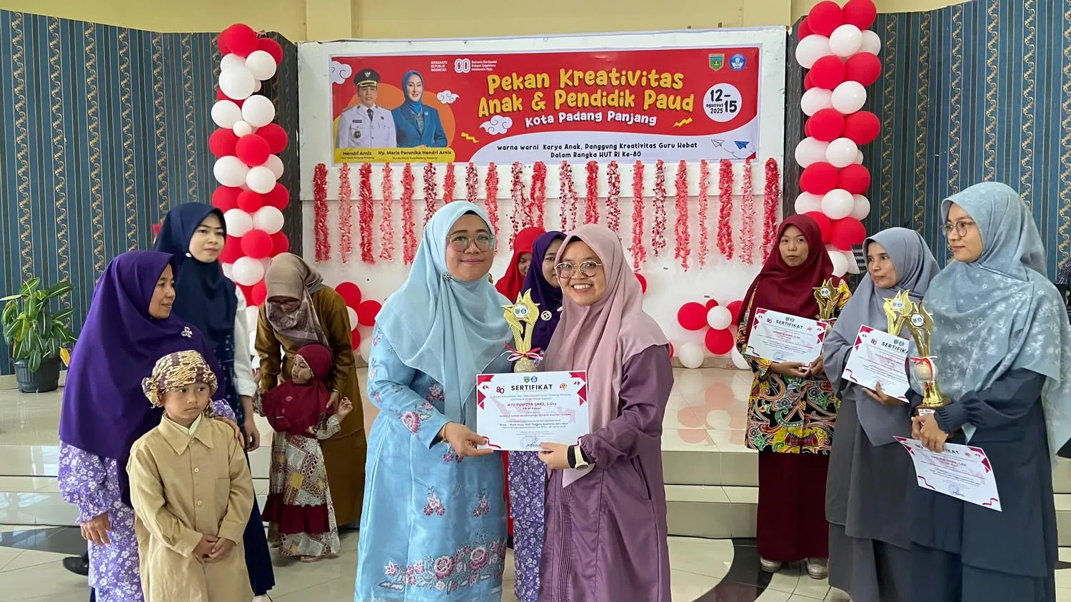 PADANG PANJANG – Pekan Kreativitas Pendidikan Anak Usia Dini (PAUD) dan Pendidik PAUD Kota Padang Panjang resmi ditutup Bunda PAUD, Nym Maria Feronika Hendri Arnis, di Aula Dinas Pendidikan dan Kebudayaan (Disdikbud), Selasa (19/8/2025).Penutupan berlangsung meriah dengan penampilan kreativitas anak-anak PAUD yang memukau para hadirin.