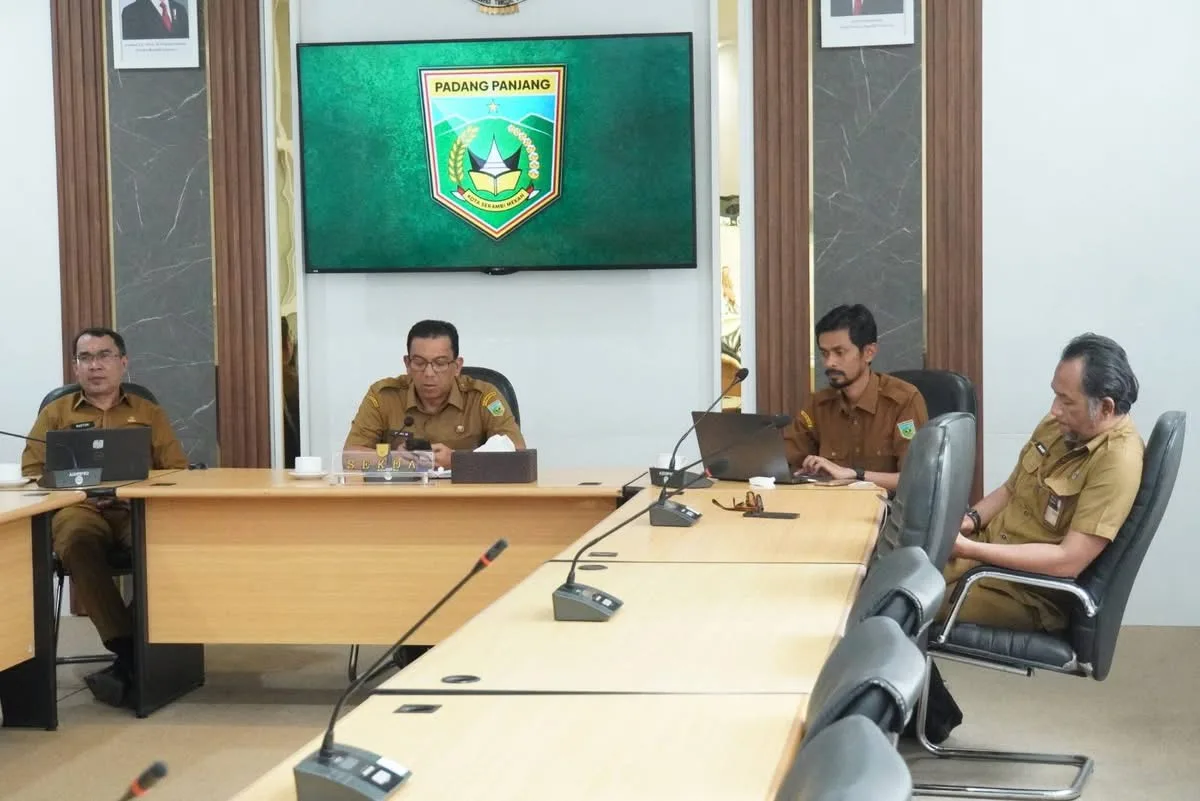 PADANG PANJANG – Pemerintah Kota (Pemko) Padang Panjang ikuti Rapat Kerja sekaligus Rapat Dengar Pendapat (RDP) dengan Komisi II DPR RI melalui Zoom Meeting, Senin (25/8/2025).Kegiatan yang membahas agenda strategis penyelenggaraan pemerintahan daerah ini diikuti Sekretaris Daerah Kota (Sekdako), Sonny Budaya Putra, Asisten III, Martoni, Sekretaris BPKD, Zia Ul Fikri, serta Kabid Pendapatan BPKD, Rio De Ronsard dari Ruang VIP Balai Kota.