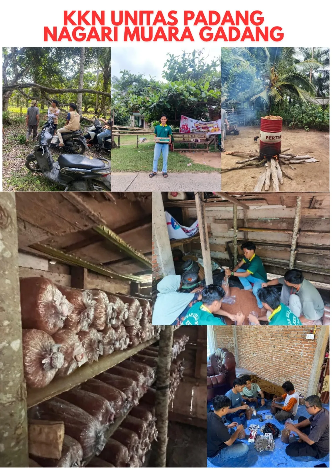 Pada Rabu, (13/08/2025), mahasiswa KKN melakukan penanaman jamur tiram bersama warga Muaro Gadang dan penyusunan baglog di rak jamur tiram. Kegiatan ini menunjukkan bahwa mahasiswa KKN memiliki semangat gotong royong yang kuat dan saling bekerja sama dalam mencapai tujuan bersama.
