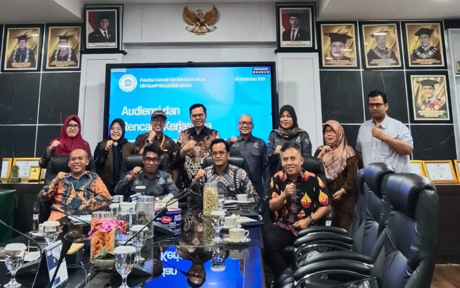 Audiensi dipimpin langsung oleh Dekan Fakultas Dakwah & Ilmu Komunikasi, Prof. Dr. Gun Gun Heryanto, M.Si, didampingi para Wakil Dekan dan Ketua Program Studi.