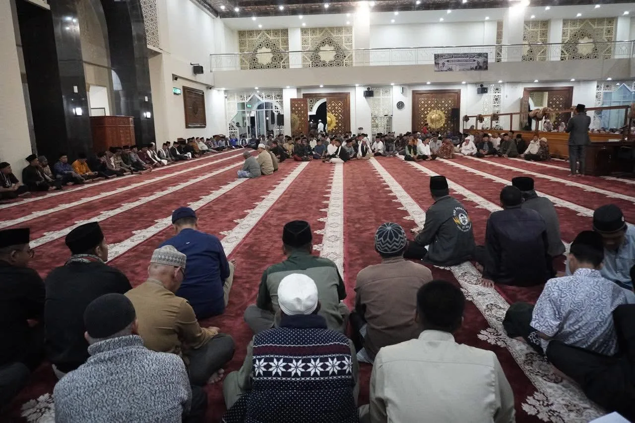 PADANG PANJANG – Aparatur Sipil Negara (ASN), non-ASN, pelajar dan warga Padang Panjang padati Masjid Agung Manarul Ilmi Islamic Centre untuk memperingati Maulid Nabi Muhammad SAW, Kamis (4/9/2025) malam.Selain memperingati Maulid Nabi, rangkaian kegiatan juga diisi dengan Istighasah, Zikir, dan Doa untuk Kesatuan Bangsa, serta Salat Magrib dan Isya berjemaah. Kegiatan ini menghadirkan penceramah Dr. H. Rahmat, S.Pd.I, S.Ag, MM. Tuanku Sulaiman.