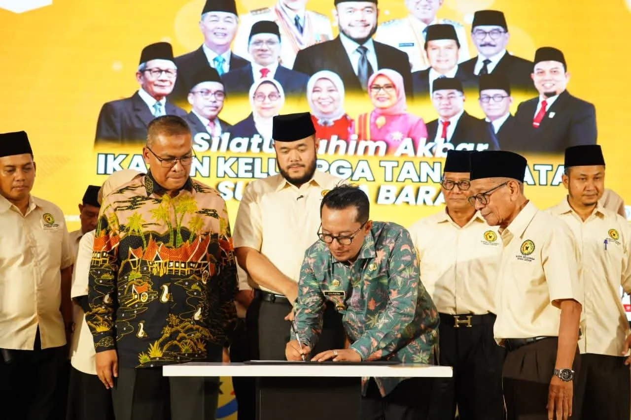 TANAH DATAR, Bacalahnews - Bupati Tanah Datar Eka Putra menyampaikan apresiasi atas pengukuhan Fadly Amran sebagai Ketua Umum Ikatan Keluarga Tanah Datar (IKTD) Provinsi Sumatera Barat periode 2025 - 2029 di Padang, Minggu (21/9/2025)."Atas nama pribadi dan Pemerintah Daerah Saya menyampaikan ucapan selamat atas dikukuhkannya dinda Fadly Amran menjadi ketua Umum IKTD Sumbar bersama pengurus dan anggota, semoga mampu mengemban amanah ini dan menjadikan paguyuban ini semakin baik ke depan," ujar Eka.